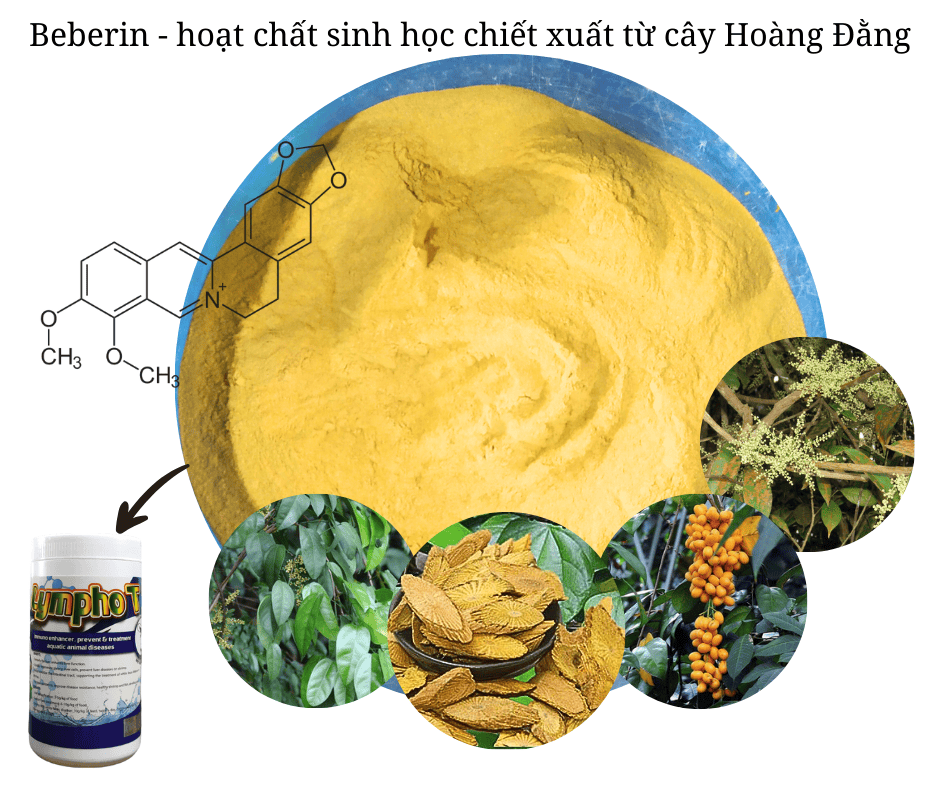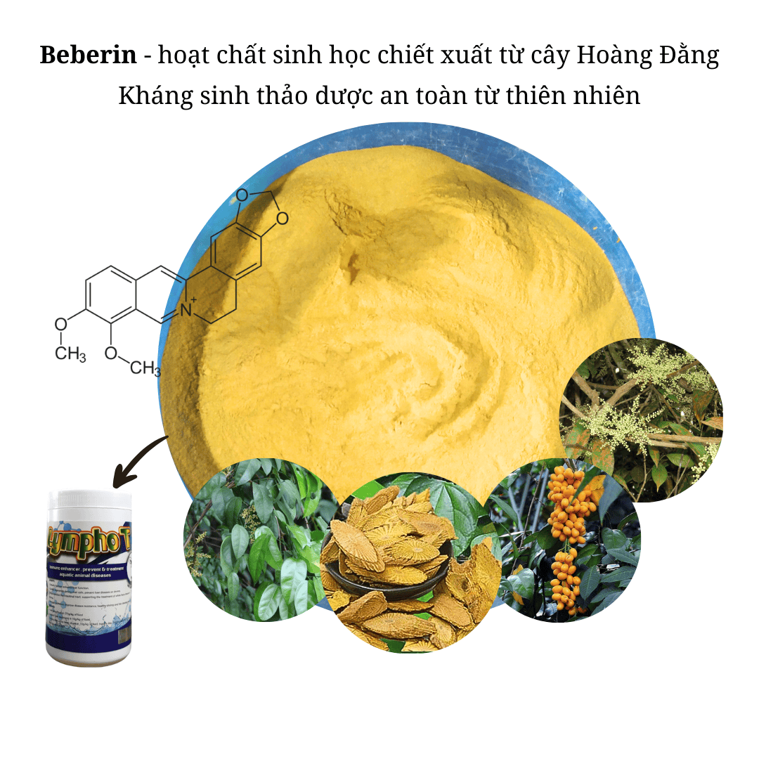Berberin hydroclorid là hoạt chất được chiết từ cây hoàng đằng - một chế phẩm hoàn toàn từ thiên nhiên, phòng và điều trị bệnh về đường tiêu hóa, không tồn dư, tuyệt đối an toàn cho thủy sản.