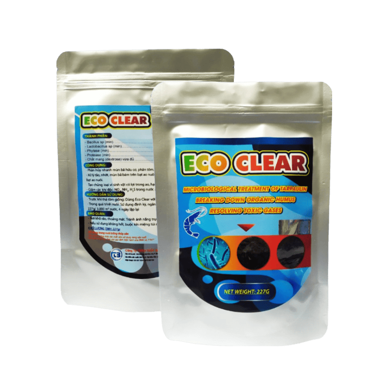 - Trước khi thả tôm giống: Dùng Eco Clear với tỷ lệ 227g/ 5.000 m3 nước.