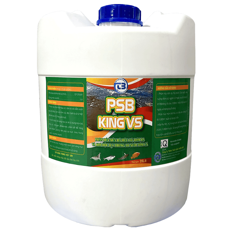 - Phân hủy rơm rạ, hạ phèn: Cho nước vào ruộng tôm cá, ngâm 23 ngày sau đó dùng 2 lít PSB KING VS cho 1.000 m3, trước thả nuôi 5-7 ngày, sử dụng buổi sáng.