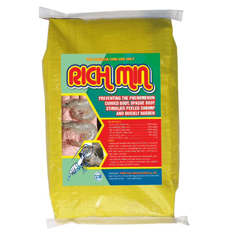 - Bổ sung khoáng chất dưới dạng muối hòa tan nên tôm dễ dàng hấp thu qua mang, vỏ, cơ thịt; giúp tôm mau chắc thịt, chắc cơ, cứng vỏ.